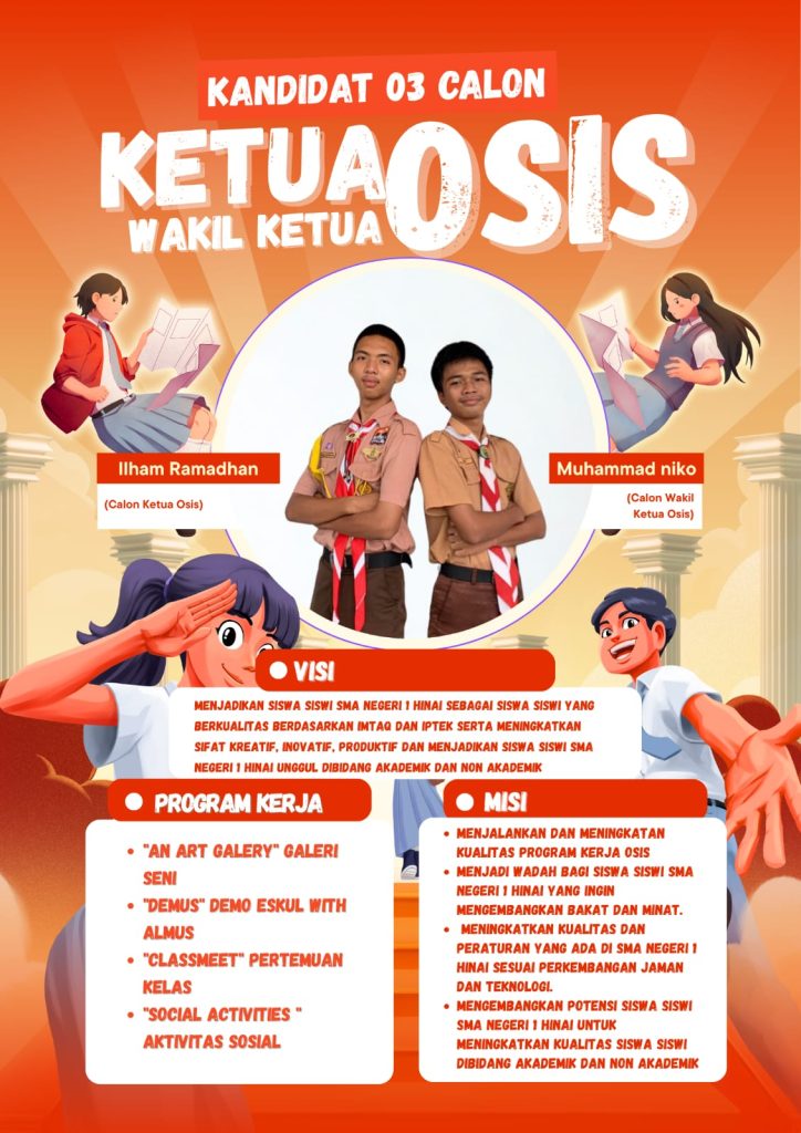 Komisi Pemilihan OSIS (KPO) SMA Negeri 1 Hinai secara resmi mengumumkan tiga pasang kandidat calon Ketua dan Wakil Ketua Organisasi Siswa Intra Sekolah (OSIS) periode 2025/2026. Pengumuman ini menandai dimulainya masa kampanye yang akan memuncak pada hari pemilihan, sebuah perwujudan nyata pendidikan demokrasi di lingkungan sekolah.